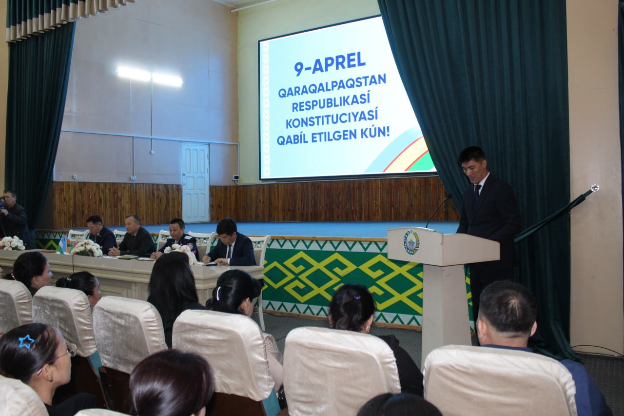 Қорақалпоғистон Республикаси Жўқорғи Кенгеси қўмита раиси Ш.Ўтемисов ўз маърузасида Конституциянинг қабул қилиниши тарихий бурилиш бўлганини, у давлат ва жамиятнинг демократик ривожланиш йўлини белгилаб берган муҳим ҳуқуқий ҳужжат эканини таъкидлади. Шунингдек, асосий қонунимиз инсон ҳуқуқ ва эркинликларини таъминлаш, миллий ҳуқуқий тизимни шакллантиришда мустаҳкам пойдевор бўлиб хизмат қилаётгани қайд этилди.