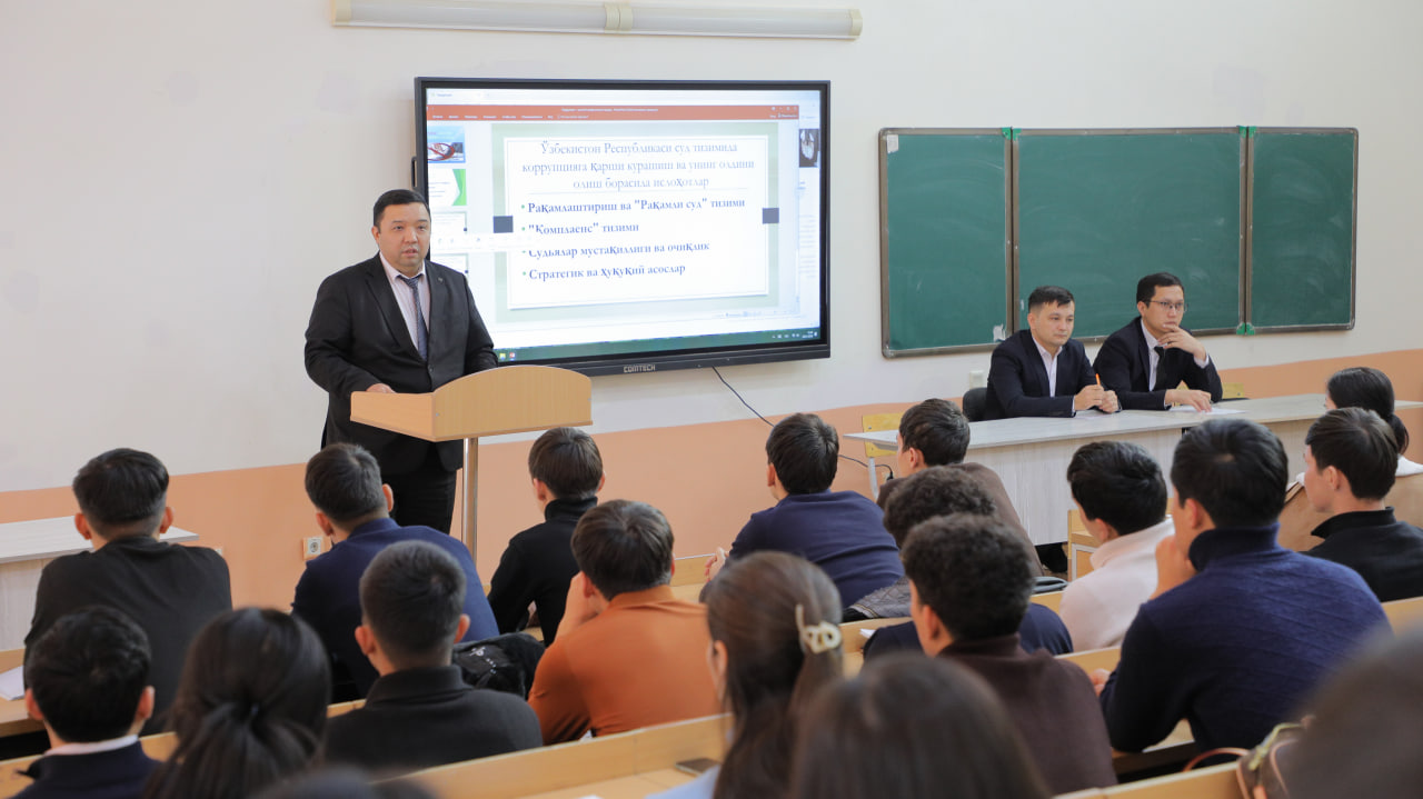 Ushırasıw juwmaǵında student-jaslar tárepinen berilgen sorawlarǵa sudyalar tolıq juwap berip, yurist kásibiniń juwapkershiligi, sud sistemasında jumıs alıp barıw talapları hám kásiplik hadallıqtıń áhmiyeti boyınsha óz pikirlerin bildirdi. Bunday ushırasıwlar jaslardıń huqıqıy sanasın arttırıw, olardı korrupciyaǵa qarsı mawasasız ruwxta tárbiyalawǵa xızmet etetuǵını atap ótildi.