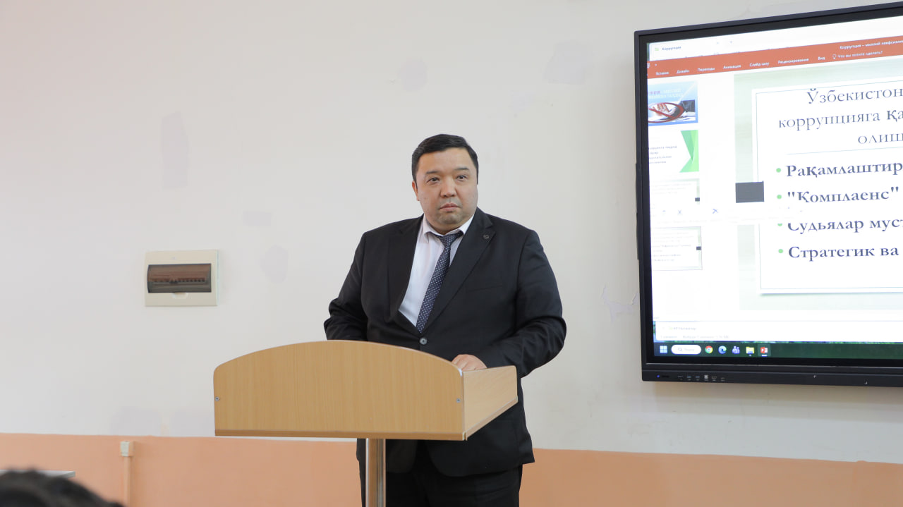 Uchrashuvda Qoraqalpog’iston Respublikasi ma’muriy sudi sudyasi A. Imatov sud tizimida korruptsiyaning oldini olish, davlat xizmatlarini raqamlashtirish hamda sun’iy intellekt texnologiyalarini joriy etish bo‘yicha amalga oshirilayotgan islohotlar haqida ma’lumot berdi. Ta’kidlanidek, sud jarayonlarining elektronlashtirilishi shaffoflikni oshirib, inson omilini kamaytirishga xizmat qiladi.