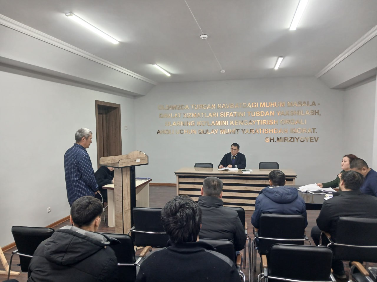 Chimboy tumani Adliya bo‘limi binosida Jinoyat ishlari bo‘yicha Chimboy tuman sudining raisi A.Uspanov raisligida ochiq sayyor sud majlisi o‘tkazildi.