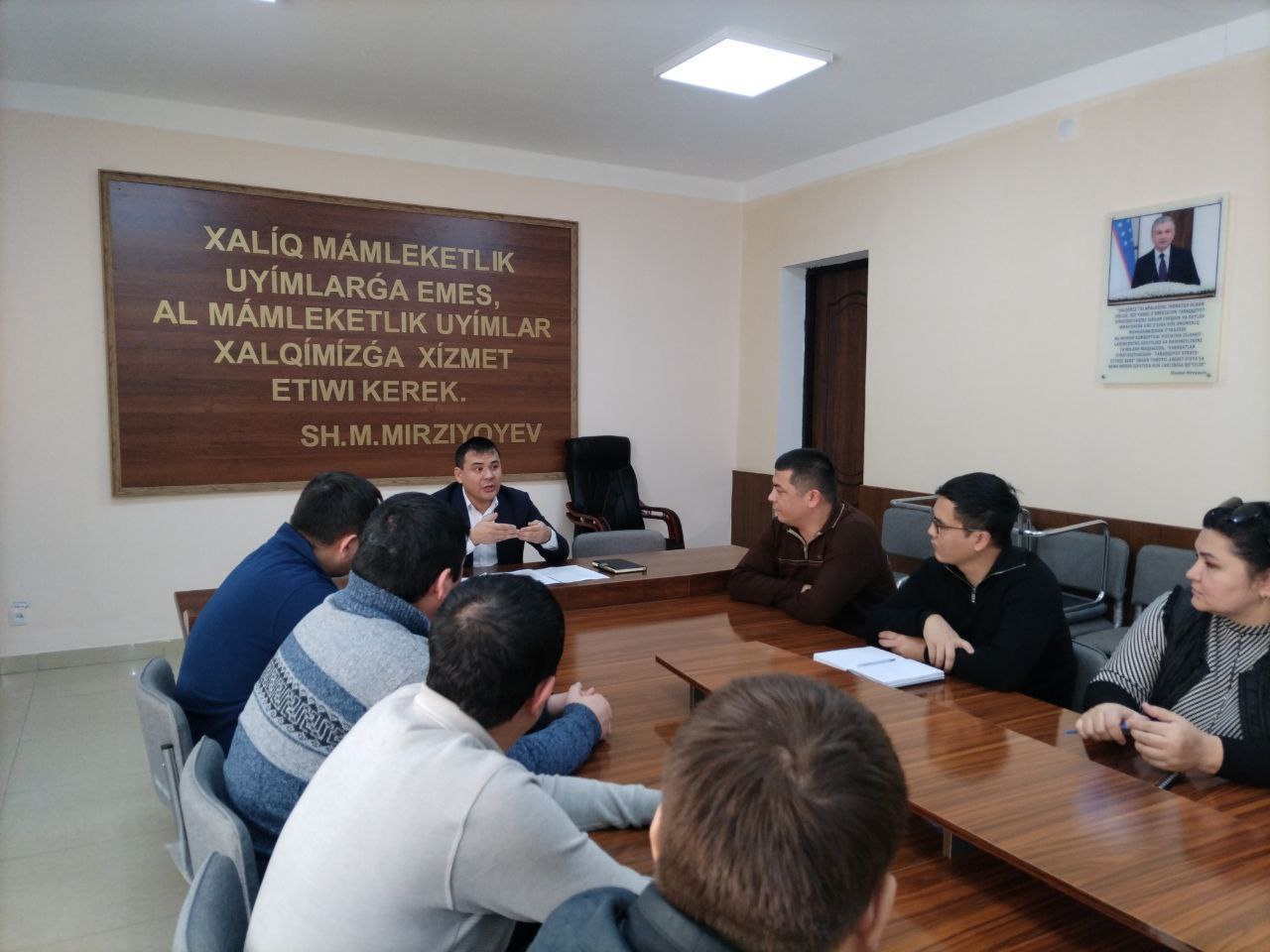 Uchrashuvda Qoraqalpog’iston Respublikasi ma’muriy sudi sudyasi A. Imatov sud tizimida korruptsiyaning oldini olish, davlat xizmatlarini raqamlashtirish hamda sun’iy intellekt texnologiyalarini joriy etish bo‘yicha amalga oshirilayotgan islohotlar haqida ma’lumot berdi. Ta’kidlanidek, sud jarayonlarining elektronlashtirilishi shaffoflikni oshirib, inson omilini kamaytirishga xizmat qiladi.